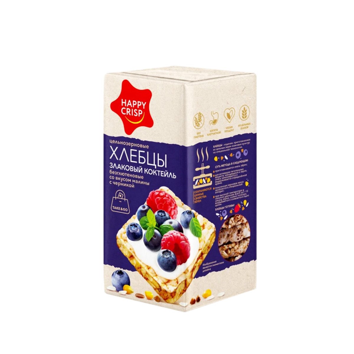Хлебцы безглютеновые «HAPPY CRIPS» малина с черникой 60 г.