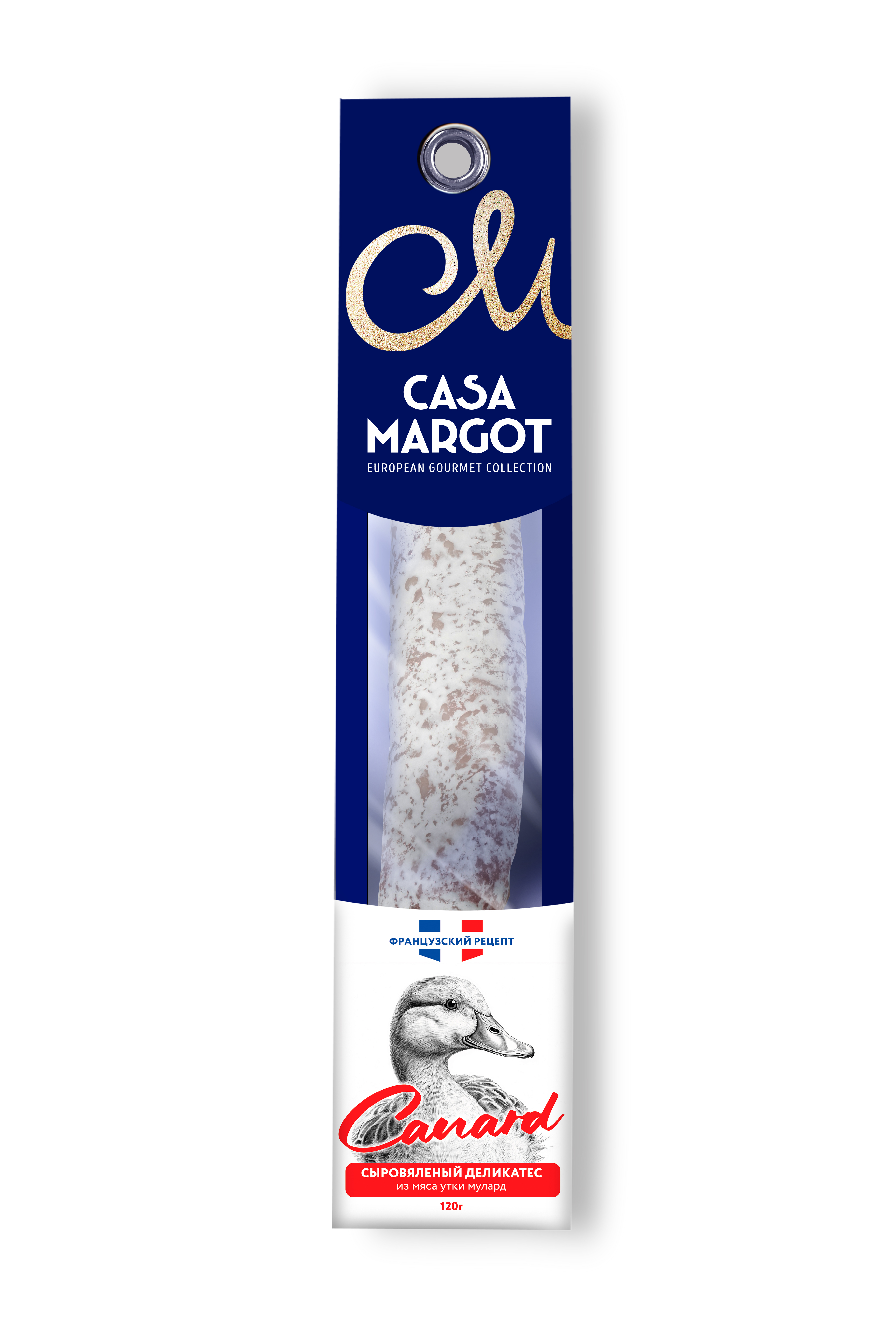 Колбаса полусухая сыровяленая из мяса утки Мулард «Фуэт Canard классический» Casa Margot 120 гр.